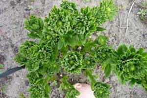 De Bloempjes staan dicht op elkaar en zijn bijna kogelvormig.
