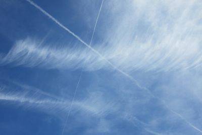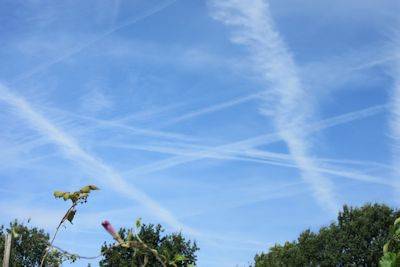 Druk verkeer in de lucht en door de wind - waaien de strepen uit tot mooie veren