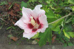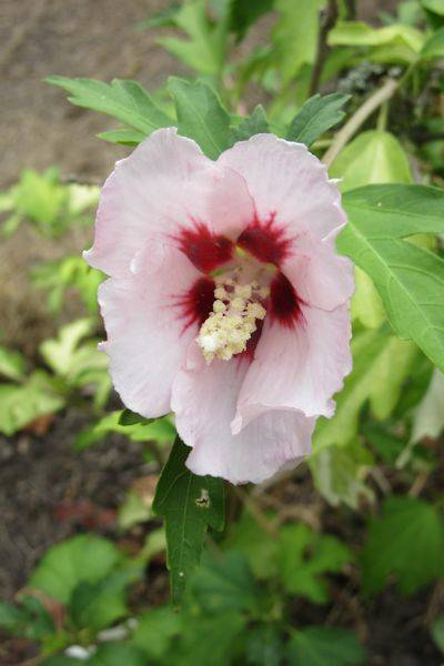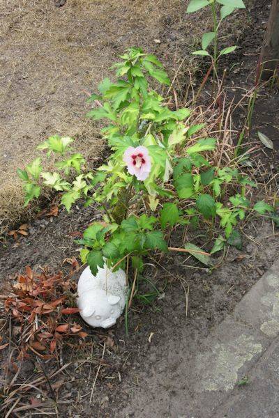 Ja de hibiscus staat eindelijk in bloei - roze zoals je ziet - mooi