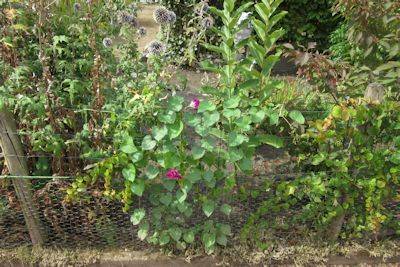 Hibiscus - Loodkruid (Ceratostigma plumbaginoides) en Sedum