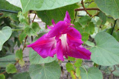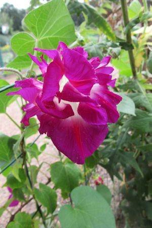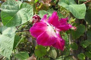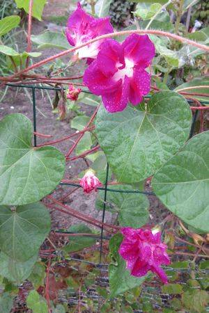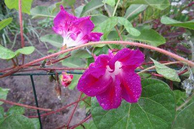 Op de foto zie je de Ipomoea x imperialis Sunrise Serenade, die wat meer warmte nodig heeft (je kunt in het algemeen stellen dat een Ipomoea imperialis wat meer eisen stelt aan grond, zon en warmte dan een Ipomoea haagewinde.