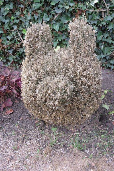 Jammer maar helaas - het buxus varkentje is weg - opgegeten door de buxus mot