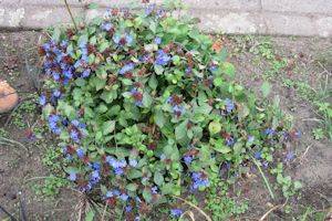 Middelste foto - Ceratostigma plumbaginoides of loodkruid is een langbloeiende vaste plant