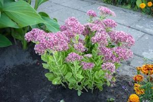 Sterk uitgroeiende, vertakte plant met grote roze,