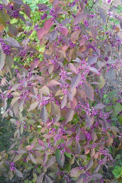 die geweldig contrasteren met het purperkleurige blad.