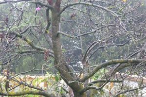 Blad is er dan niet te zien, pas in het voorjaar er na verschijnt het blad,