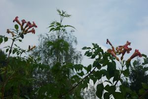 Clematis en Polygonum orientale (kiss me over the garden gate)
