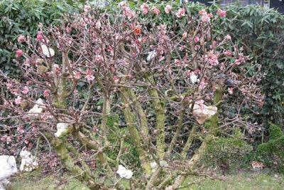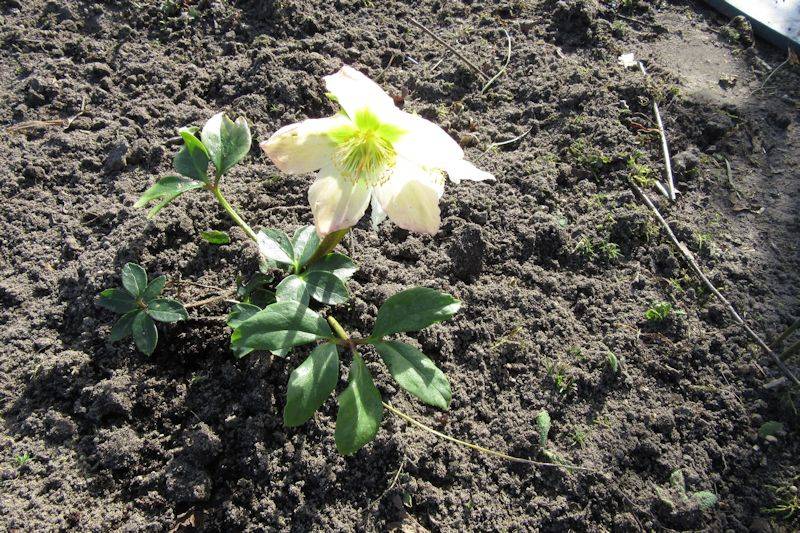 De witte bloemen van Helleborus niger zijn tussen de 4 en 8 cm groot en verkleuren naar roze.