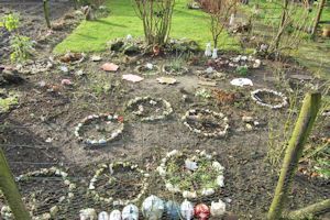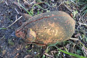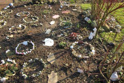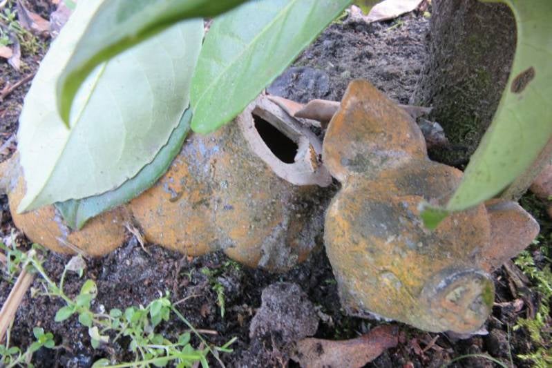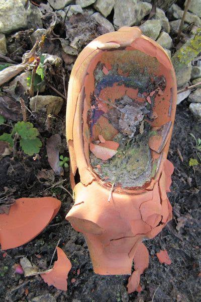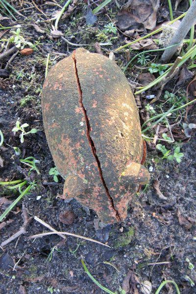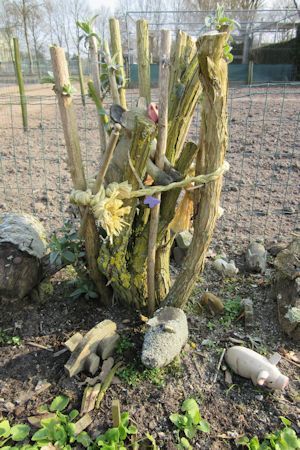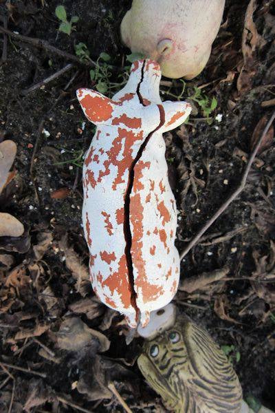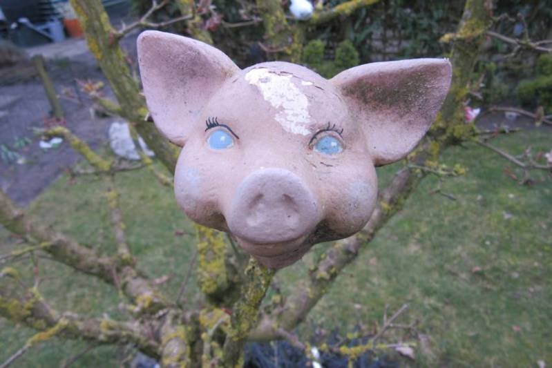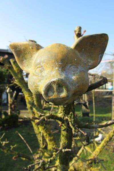 De kop van dit kapotte varken heb ik in de boom gehangen.
