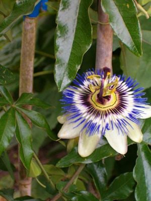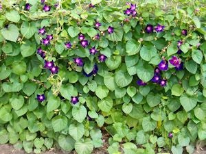 Het is een grote plant met blauwe, trechtervormige bloemen en decoratieve zaaddozen die vaak gebruikt worden in droogboeketten.