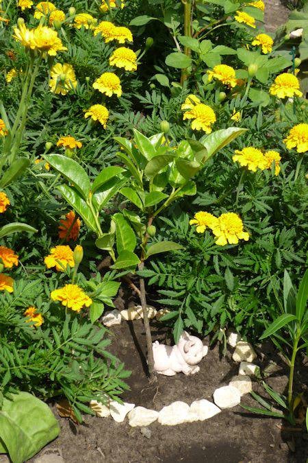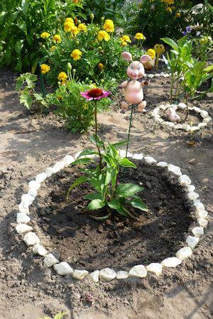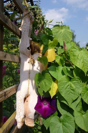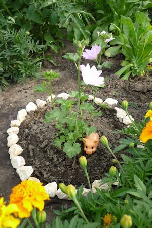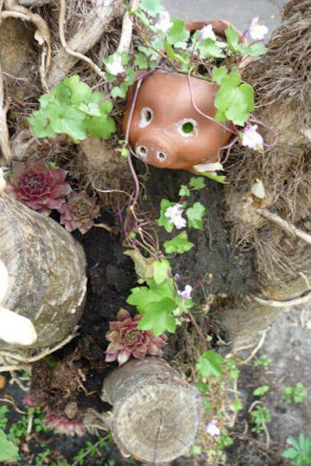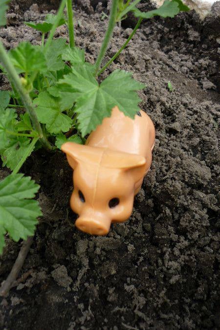 De Varkens staan leuk tussen mijn planten.