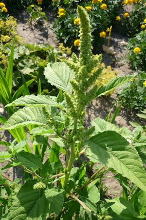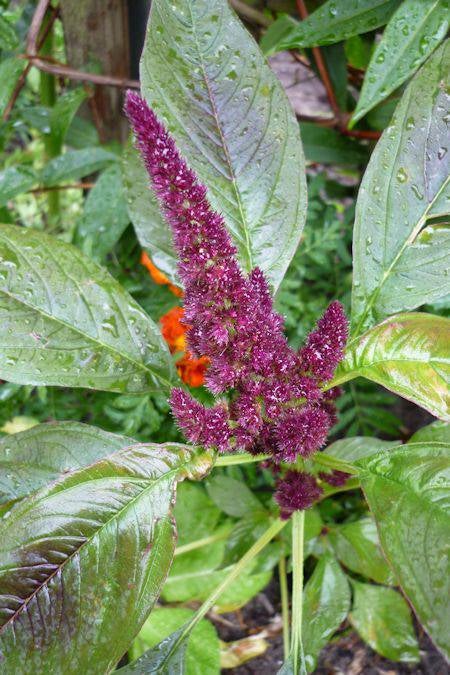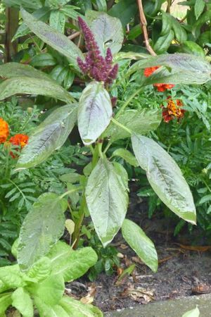 In de zomer en herfst veel aren met kleine, dieprode bloemen.