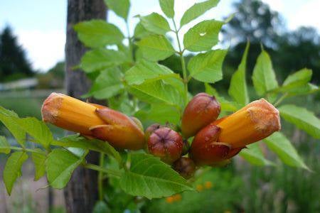 Trompetbloemen zijn bladverliezende klimplanten die zich tijdens