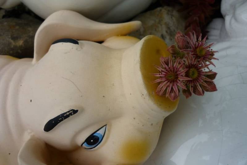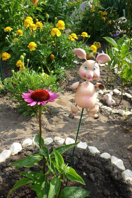 Weer een varken gekregen - van kunststof - voor in de tuin.