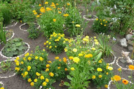 Er zijn grote bloemen in veel variaties , dubbelbloemig, goudsbloemen blijven lang in bloei, vanaf het einde van de lente tot aan de winter