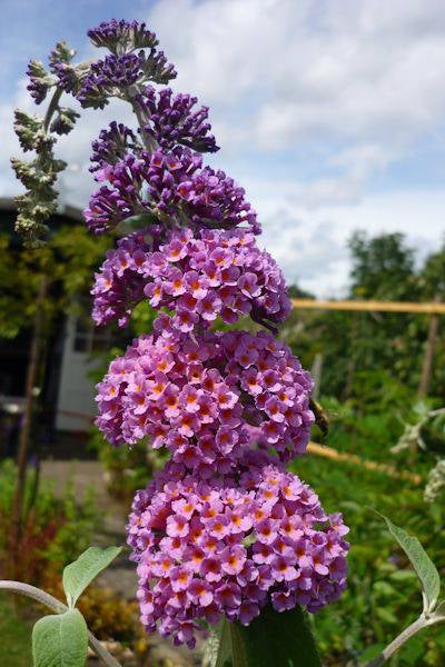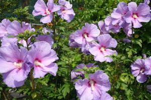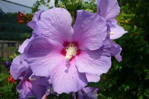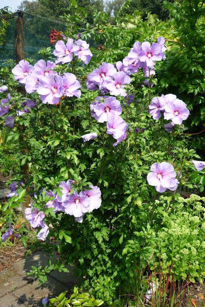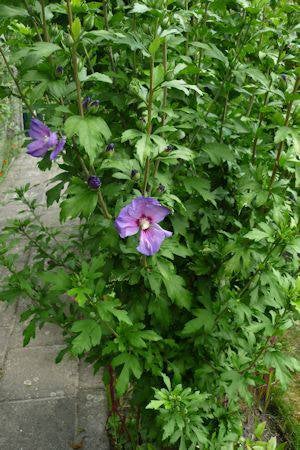 De Hebe_struikveronica en de Hibiscus staan volop in de bloei.