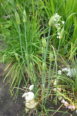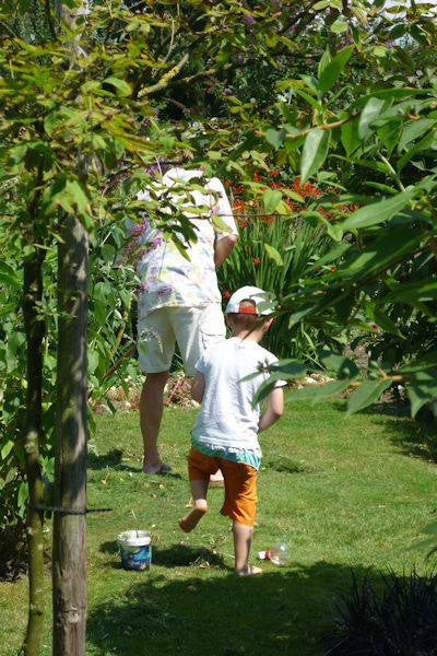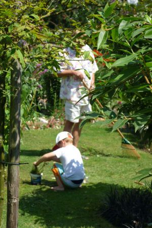 Opa en zijn knechtje zijn hard aan het werk in mijn tuin.