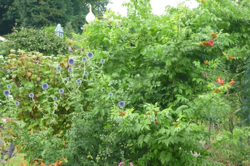 Zoals de Zonnehoed - siergras - annemoon en - Campsis.