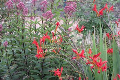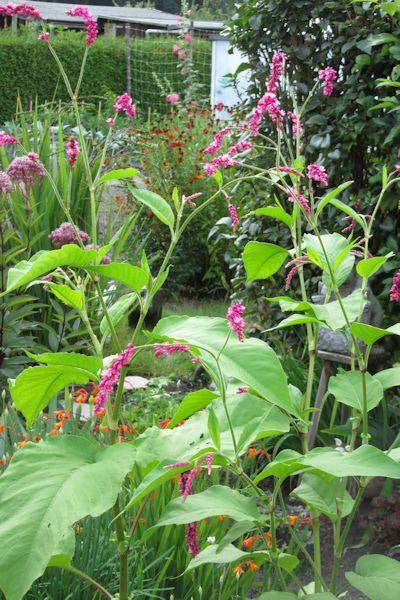 Crocosmia - Persicaria orientale (kiss me over the garden gate) -Zonnebloem