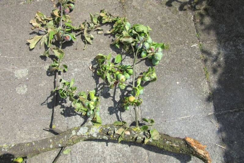 De takken van de pruimenboom breken weer af - teveel pruimen