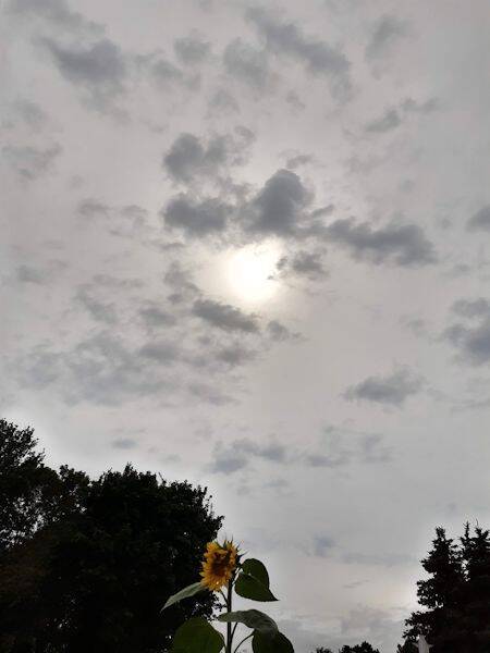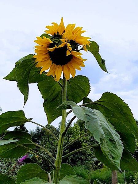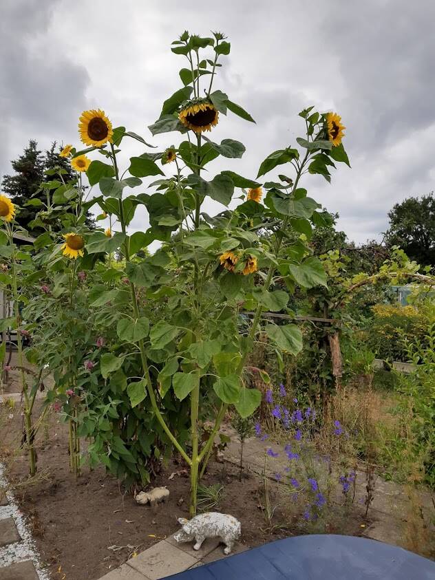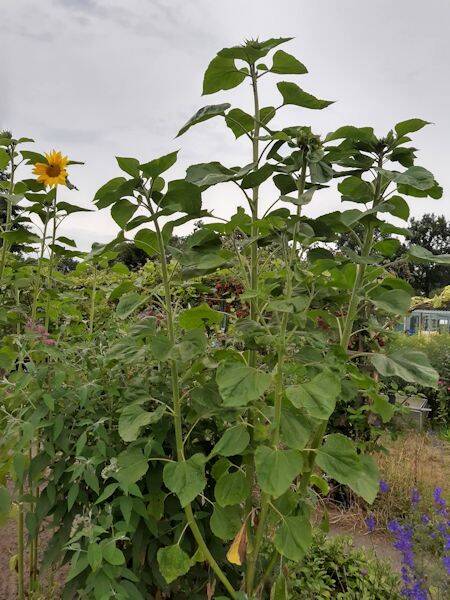 De zonnebloem blijft maar groeien - hij is nu meer dan 3 meter hoog.