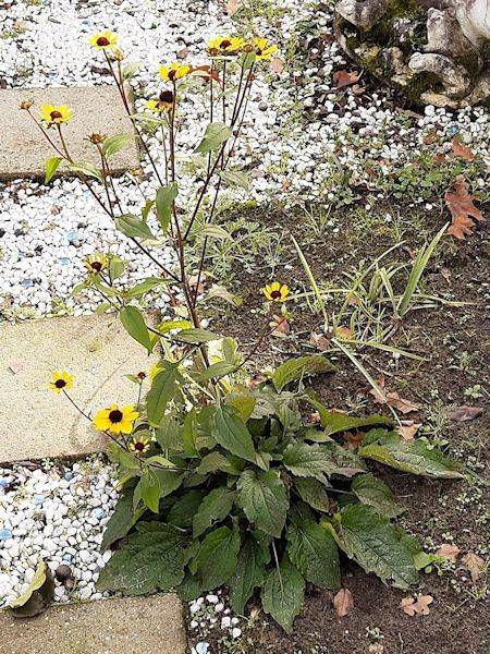Links een bloeiende bloem in november