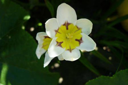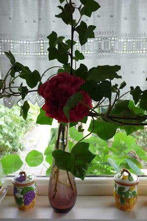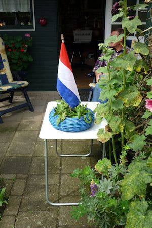 Op tafel buiten... in de tuin een vaasje met bloemen gezet
