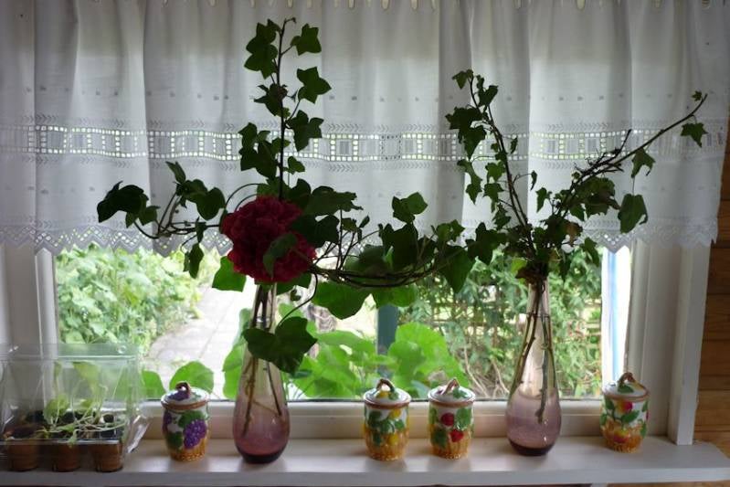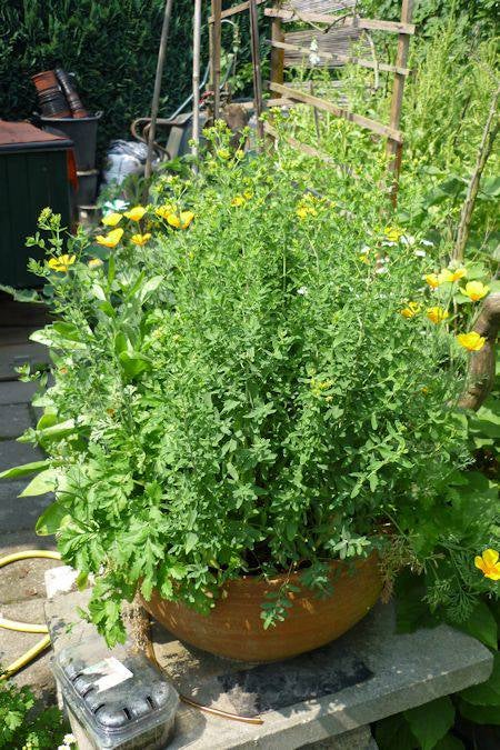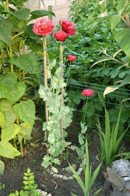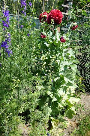Volle bloembakken, met slaapmutsjes en Sint-Janskruid.