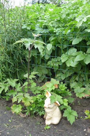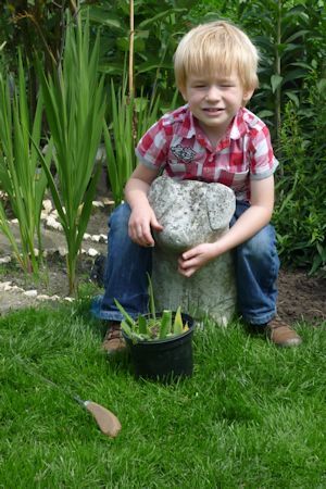 Luuk was in de tuin om oma te helpen met onkruid wieden,