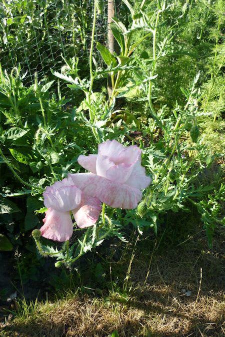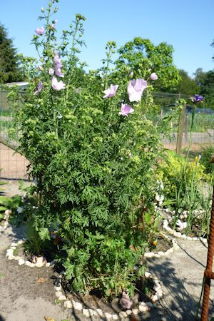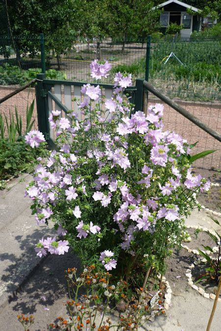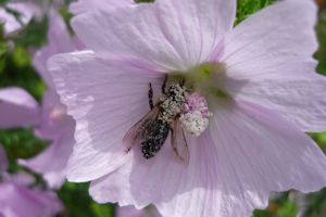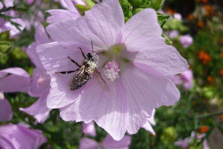 De bijen en de hommels hebben malva ook ontdekt, schitterend om te zien hoe ze genieten van deze bloem.