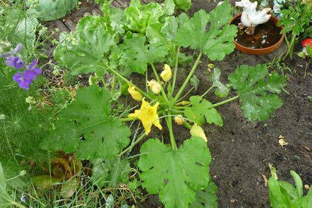 Pompoenenplant en de uitgebloeide sieruien en... nog decoratief.