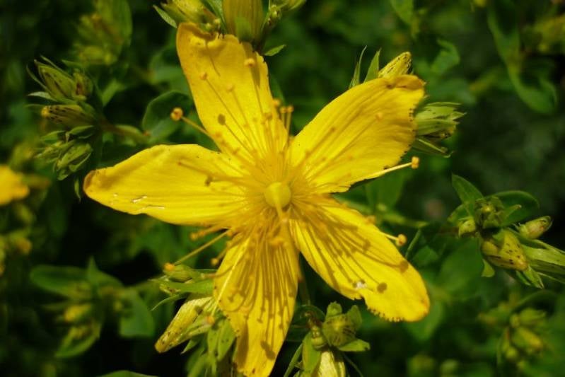 De rijk vertakte struik van het Sint-Janskruid kan tot 1 m hoog worden.