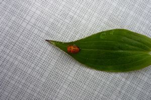 tussen de antennes, de vierledige antennes met een rode kleur