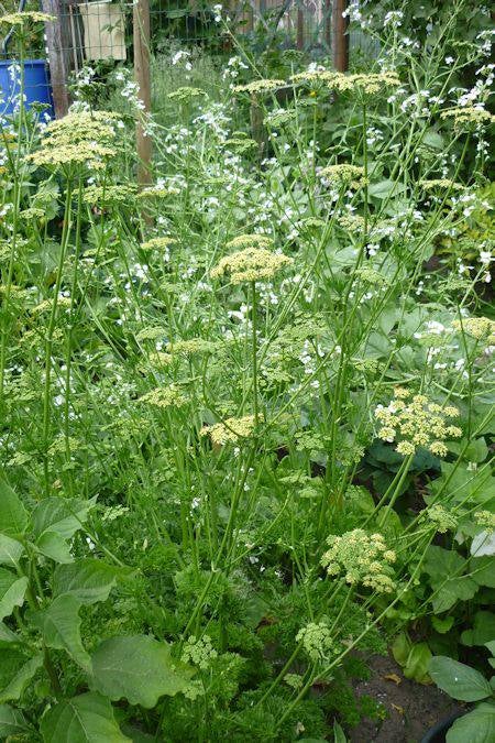 De bloemen vormen dichte schermen van kleine bloementjes.