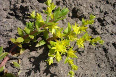 De stengels kruipen en wortelen op de knopen.