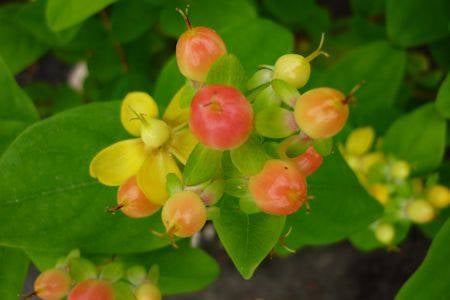 Hypericum androsaemum is halfwintergroen.