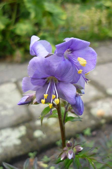 De bloei begint in juni en houdt aan tot in augustus met violet-blauwe bloemen.