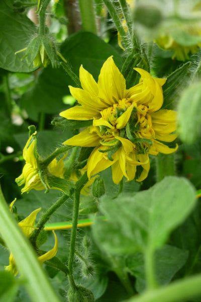 en als de tomaten net zo groot worden als de bloemen in de plant,