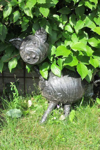 Bloemen in de bloembak en van deze varkens wordt weer een bloemenrondje gemaakt.