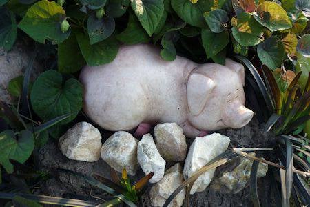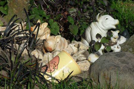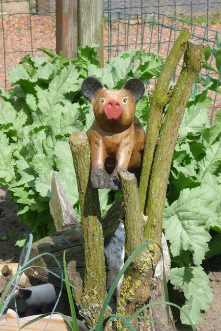 Ik heb mijn houten varken verzet, nu staat hij in de vlinderstruik.