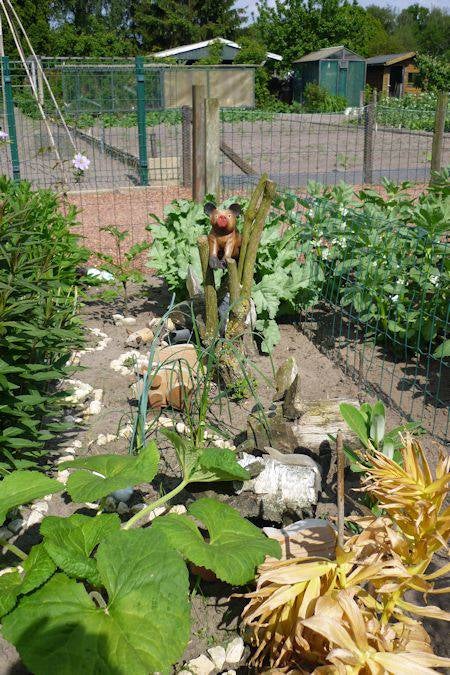 Ik zie een varken in de lucht boven het tuinhuisje.