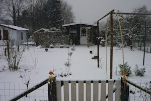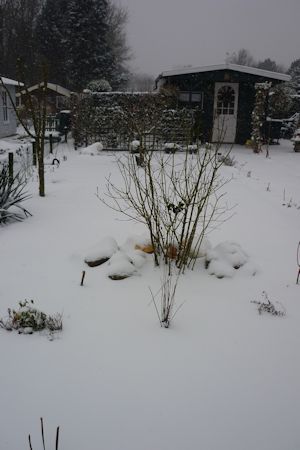 Op weg naar de tuin en nergens staan nog voetstappen,