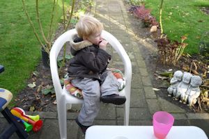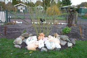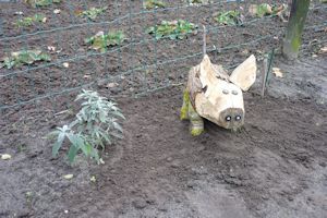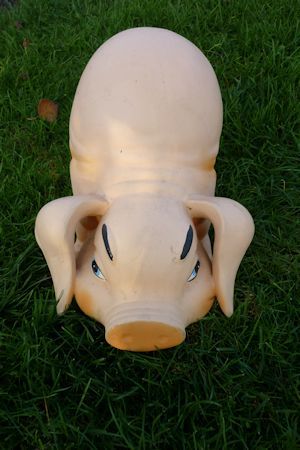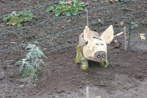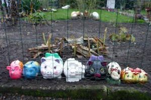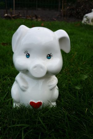 De hele grote spaarvarkens zet ik bij de seringenboom.