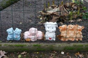 Twee grote dozen vol met spaarvarkens gekregen voor in de tuin,