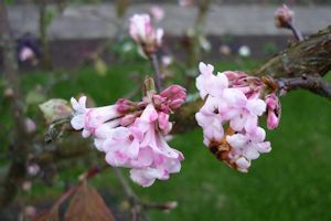 De geopende bloemen zijn prachtig witroze gekleurd.