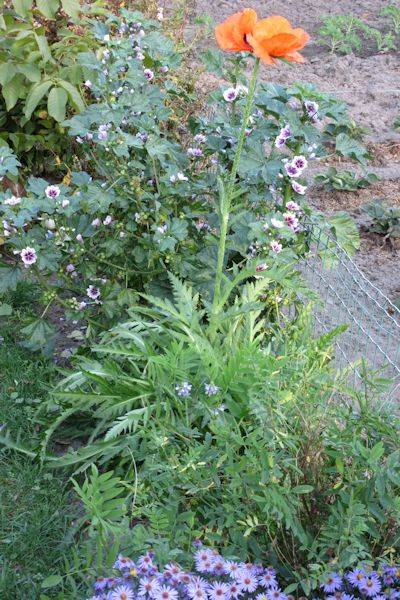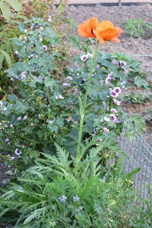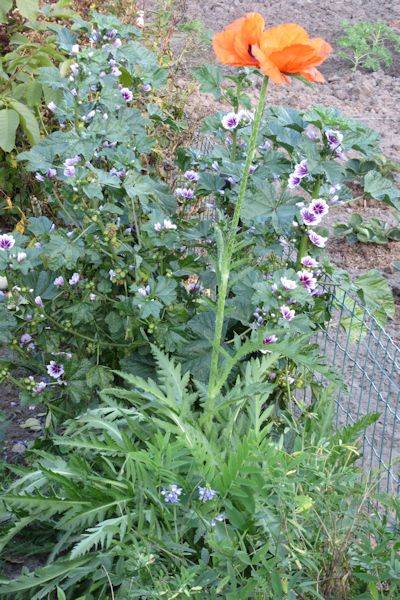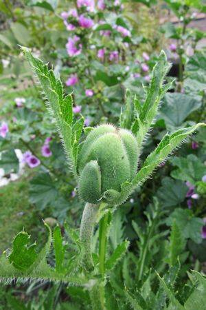 Zonnebloem - kaasjeskruid en de knop van de Japanse papaver